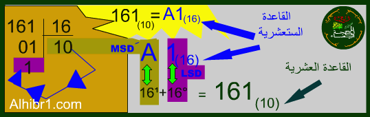 الأن لنحول الرقم العشري 161 الى القاعدة الستعشرية